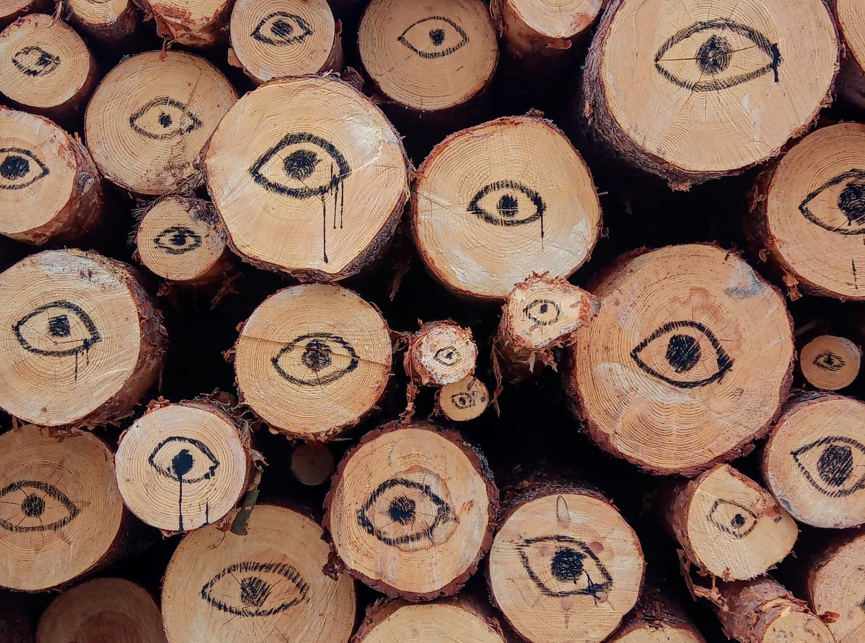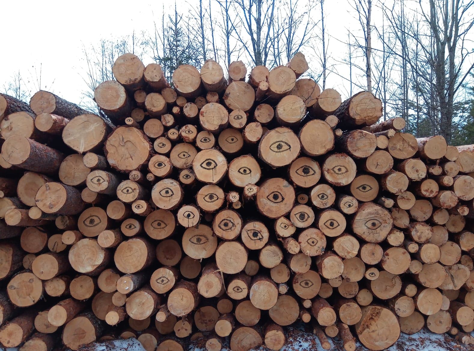 #eyeonwoods is A colaborative project with Antia Sanchez that started in 2019. Our common interest of Nature and finnish culture meets in shape of landart, sculpture, creamic and painting. #eyeonwoods is a collaborative openProject that aim to mobilize in an artistic way through action reflected in social media. We invite all people to participate with this hastag putting #eyewoods, why? To maximize the sound of a cutted tree, to use its Väki* that elevate the concept of a cutted being, a broken link to life. * Väki : “Term used in Finnish folk belief to refer to impersonal forces of a supernatural nature seen as inhabiting a wide range of objects and spaces in the natural and cultural environment: forest, wáter, animals, fire,iron tools,etc…” ( From more tan mythology, Catharina Raudvere and Jens Peter Schodt). The wind blows at the roots of the forest people, the forest spirits terrified ... the ghosts of the trees roam here restless. The bottom is missing, the eye of the earth is screaming, a generation without a future. The shaft of the gap. Forests, waters and lands are an over-generational heritage. The human eye is looking at the neck of modern man. The disappointment of future generations in the eyes, in the wood pile. What are you doing?