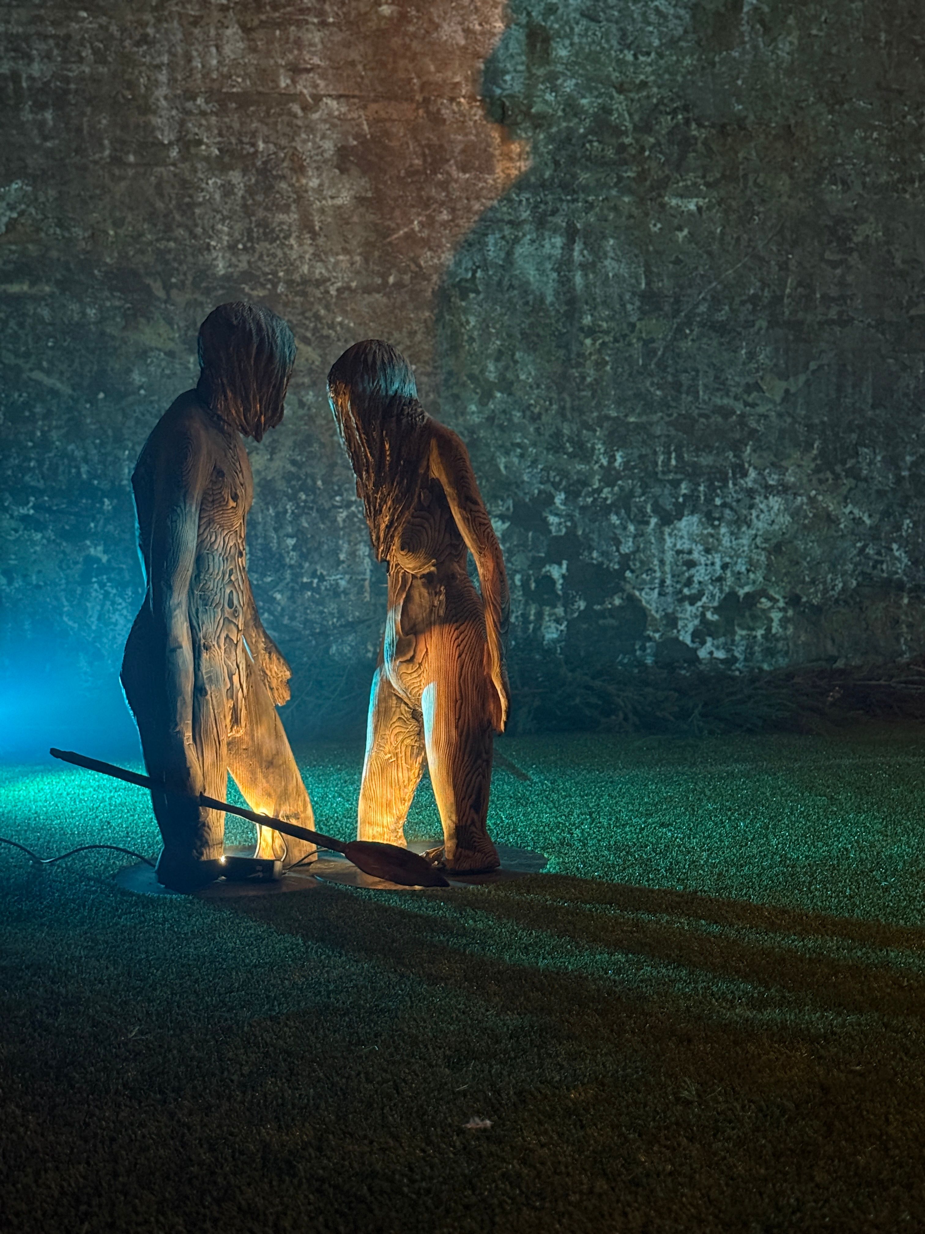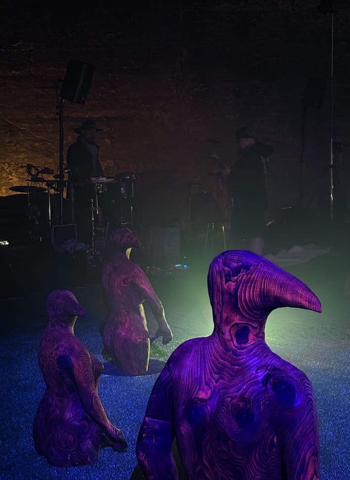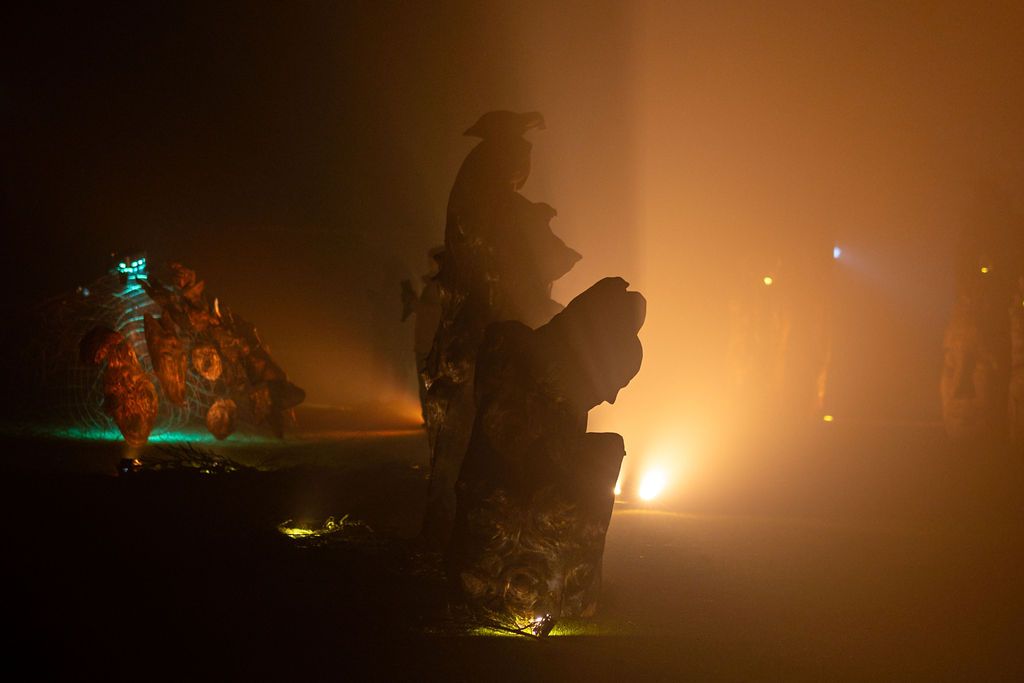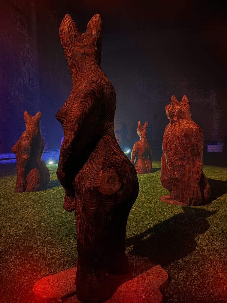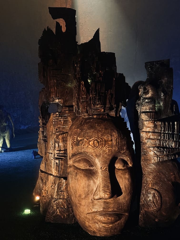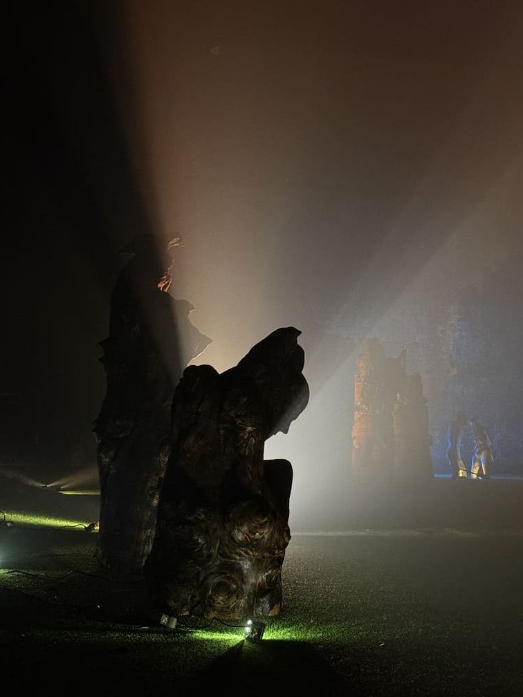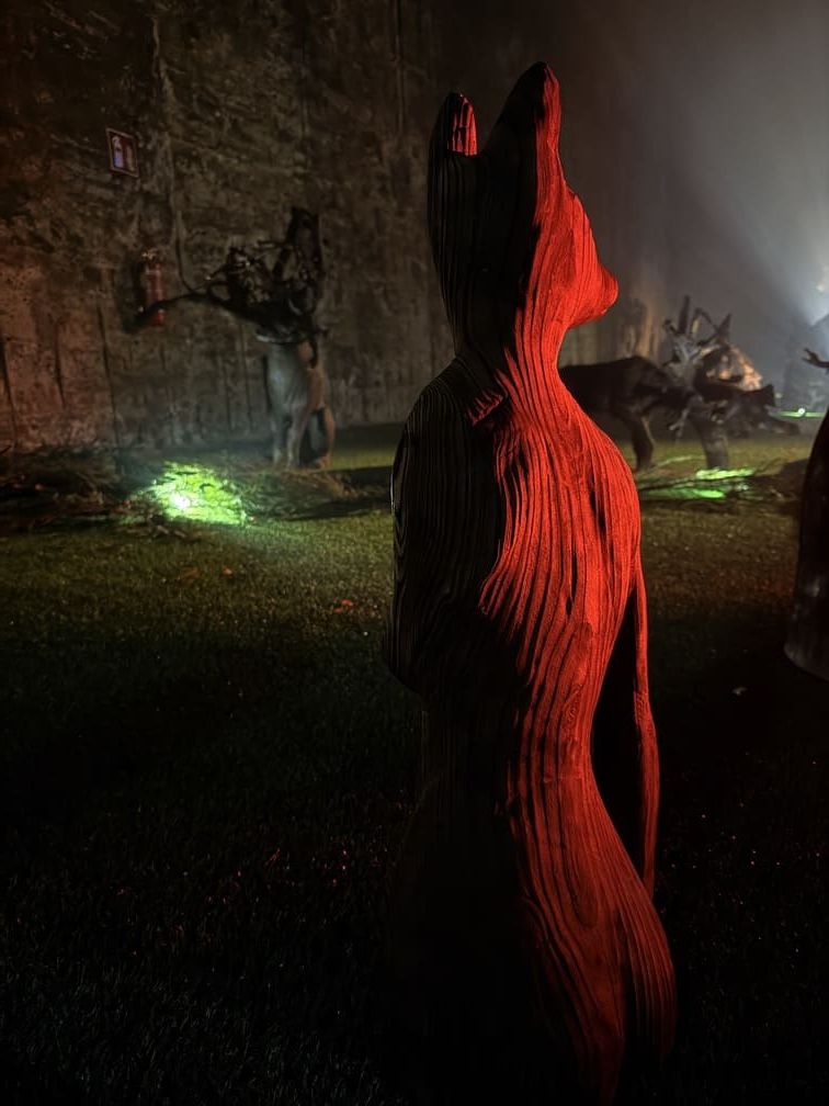 Maantaju is a site-specific world-work — an art ecosystem where sculptures, light, sound and movement share the same space with the audience. Massive wood and its roots form a landscape that shifts with every step. The viewer is not outside of it, but part of the moment in which the work takes place. Images Credit: Karoliina Gavrilov, Taina Koistinen, Paula Hulkkonen, Vlada Danko, Emili Miinalainen