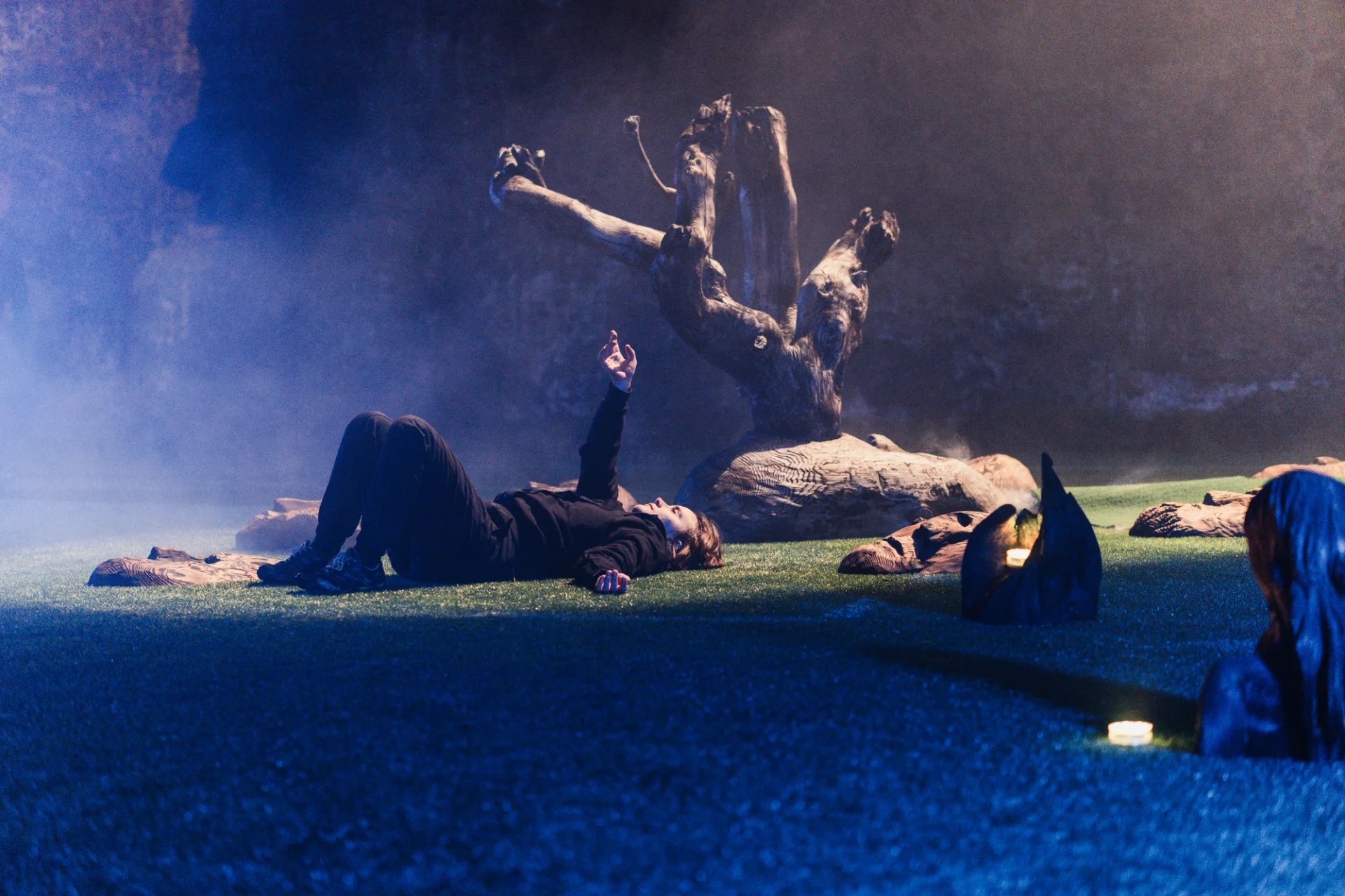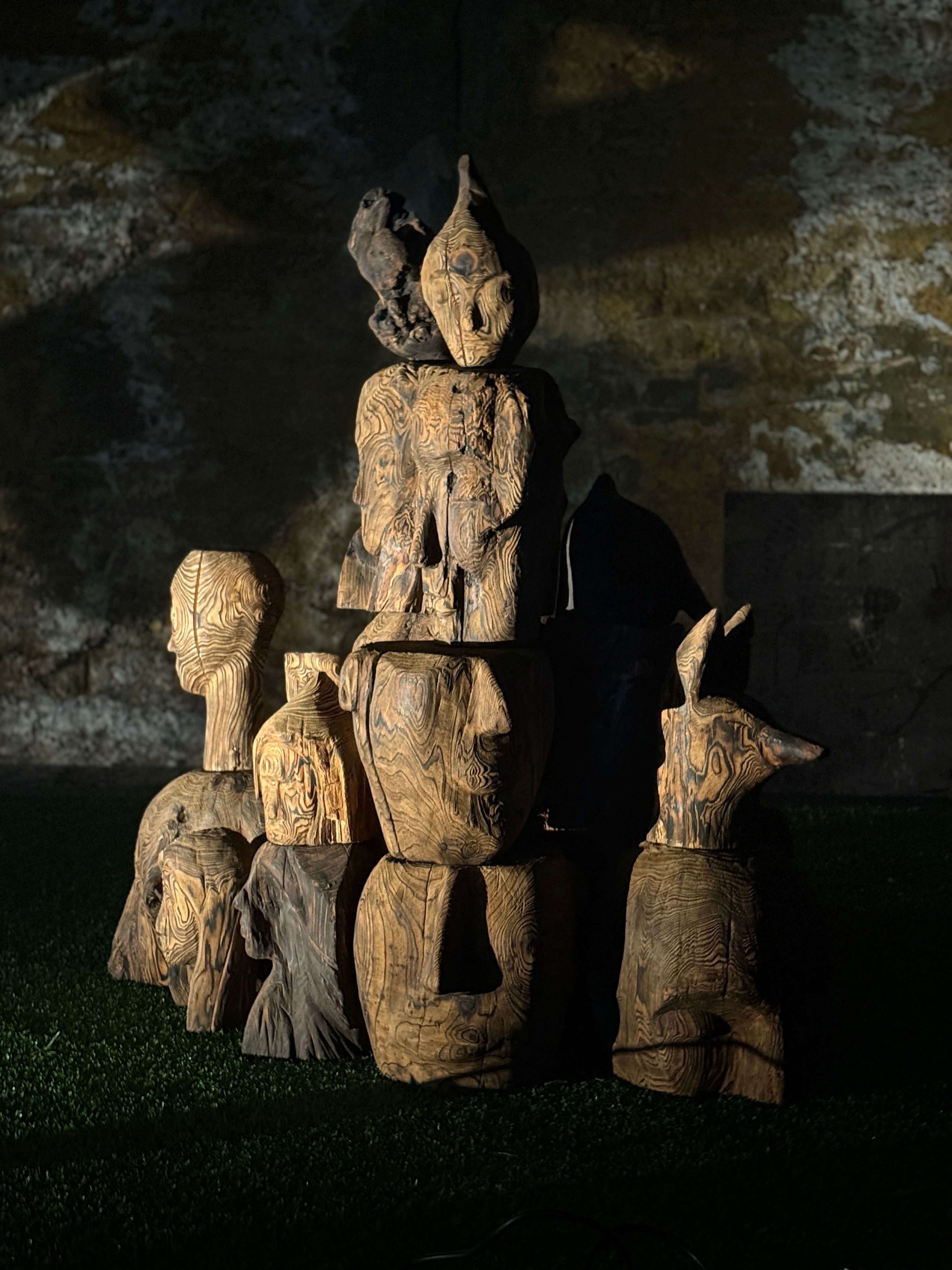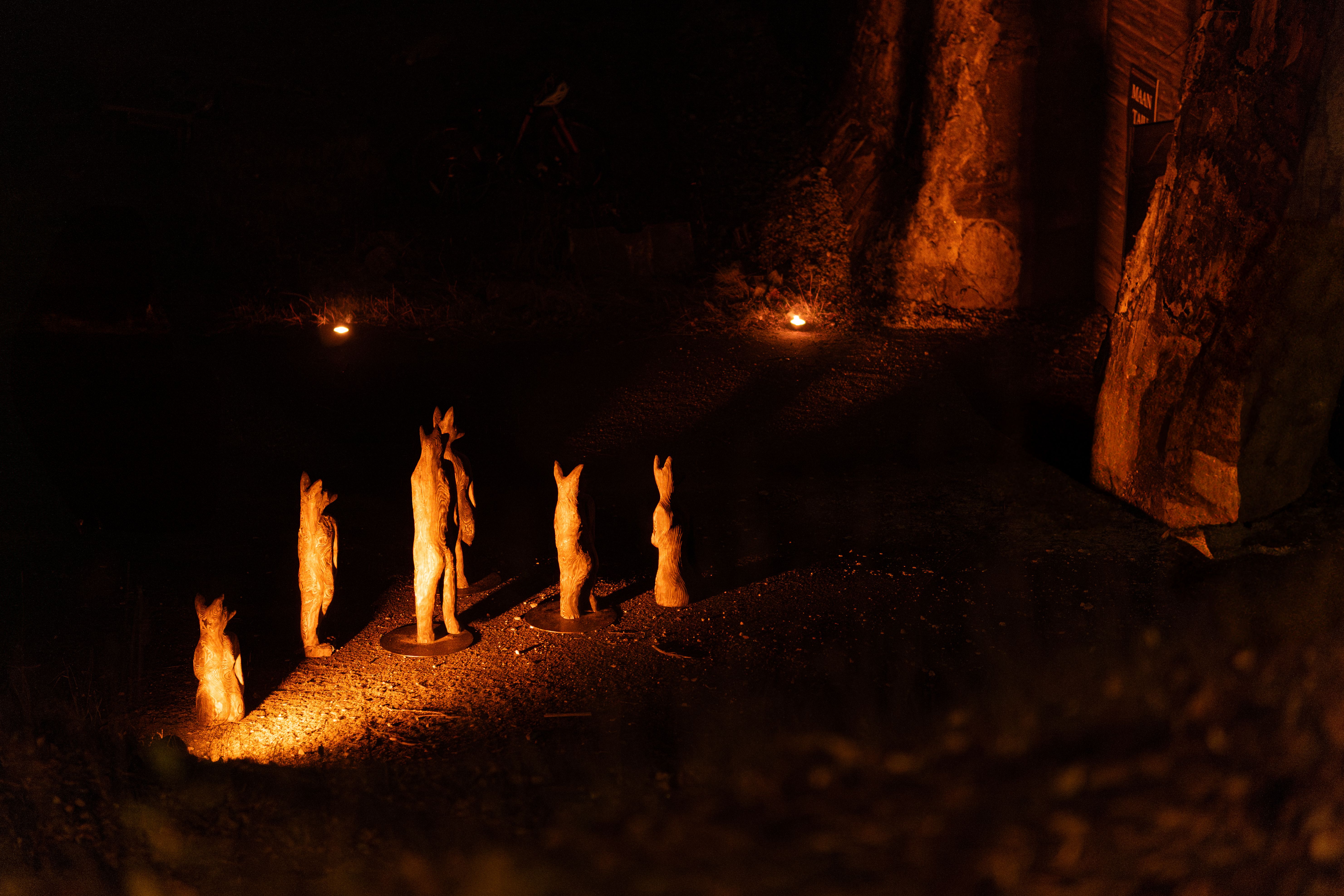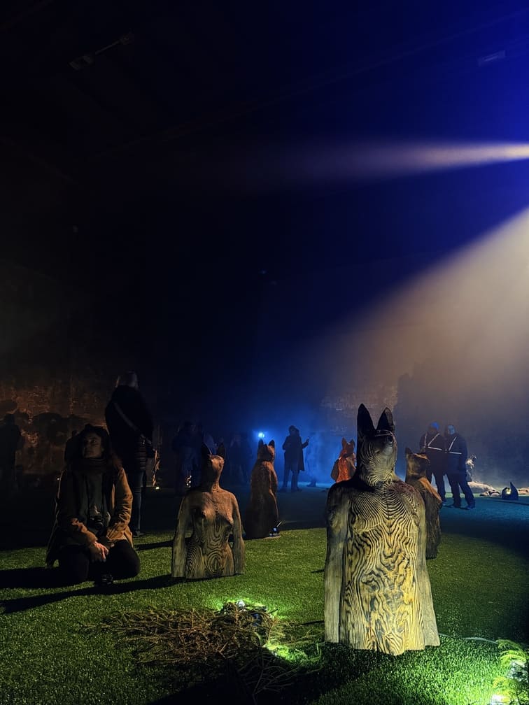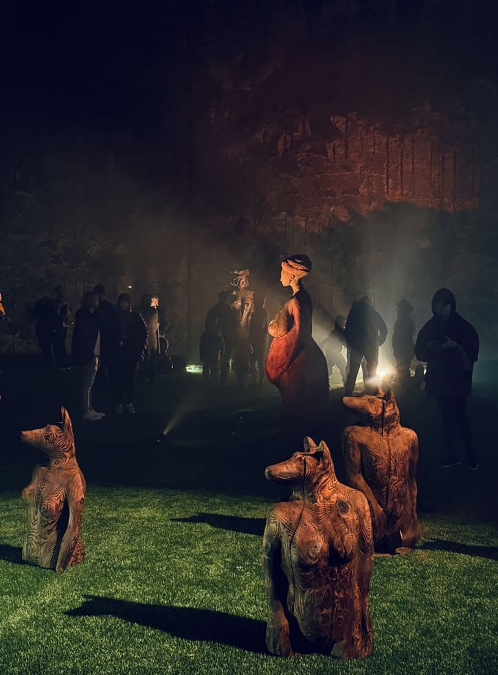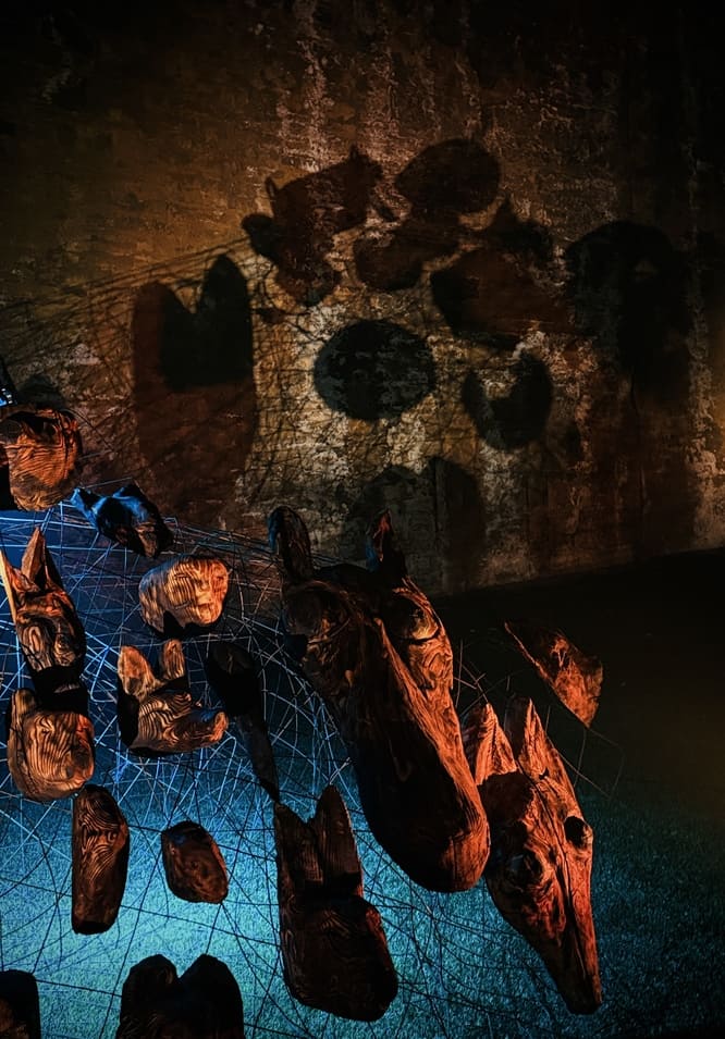 Maantaju is a site-specific world-work — an art ecosystem where sculptures, light, sound and movement share the same space with the audience. Massive wood and its roots form a landscape that shifts with every step. The viewer is not outside of it, but part of the moment in which the work takes place. Images Credit: Karoliina Gavrilov, Taina Koistinen, Paula Hulkkonen, Vlada Danko, Emili Miinalainen